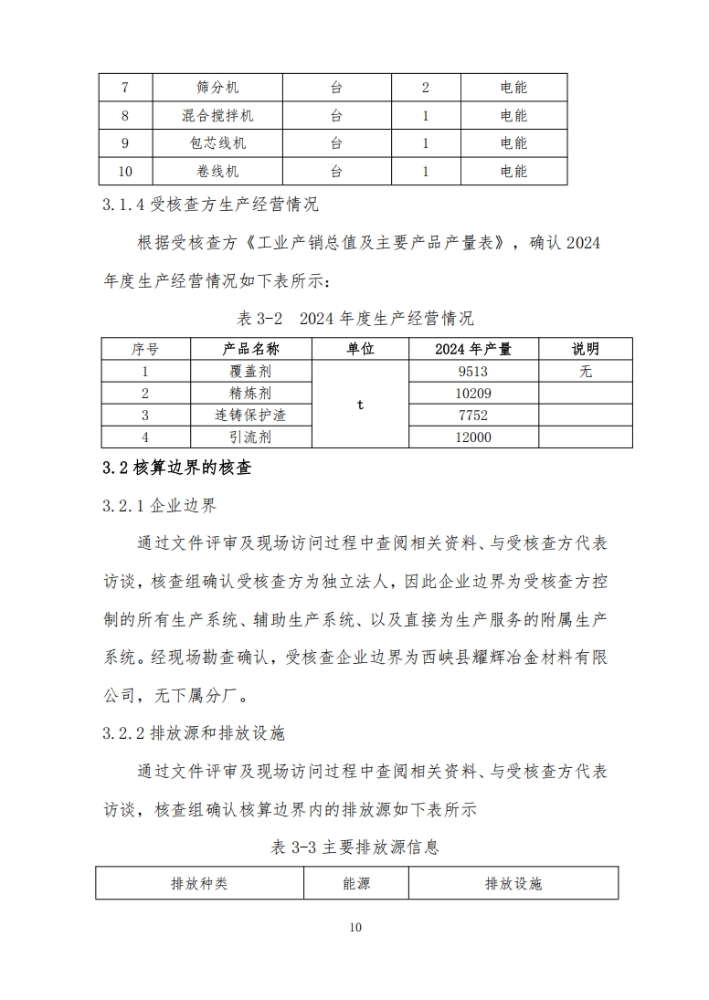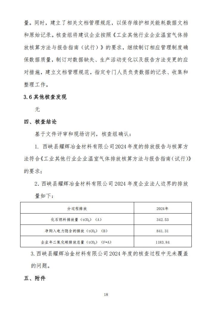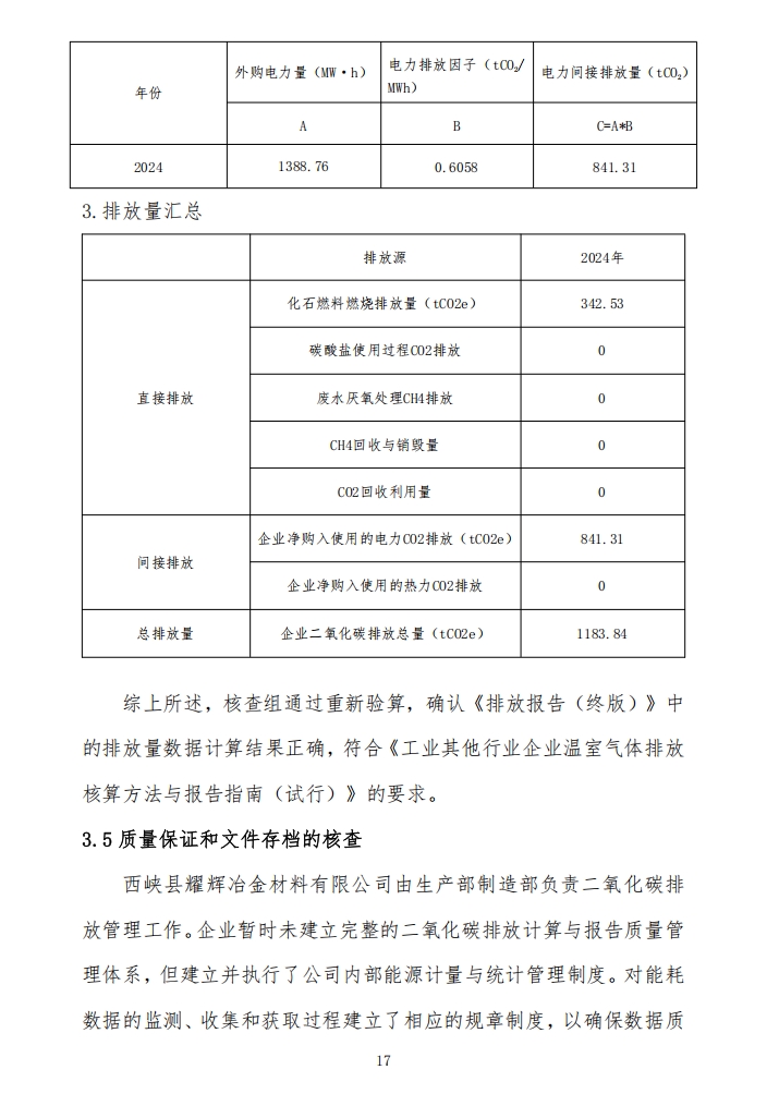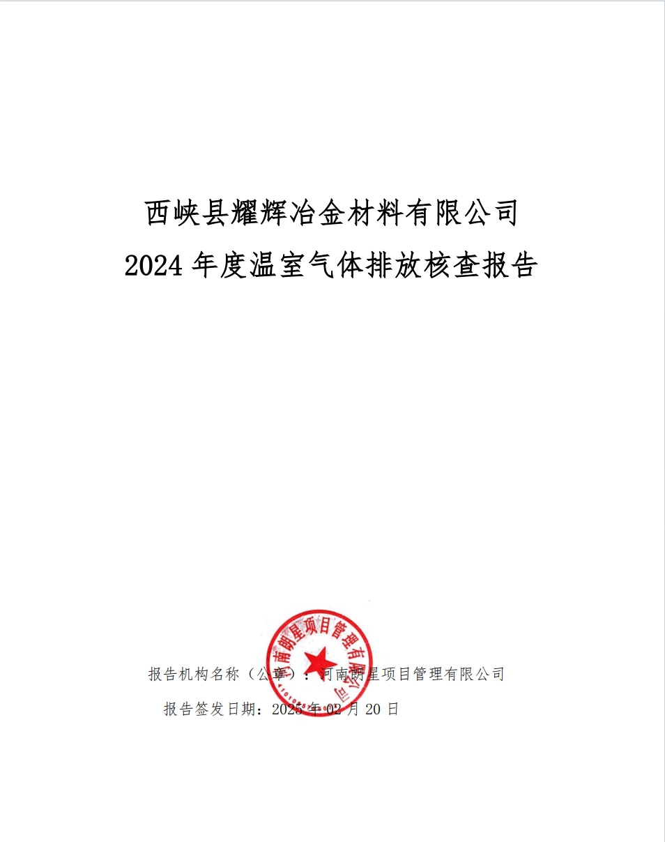西峡县耀辉冶金材料有限公司温室气体排放核查报告